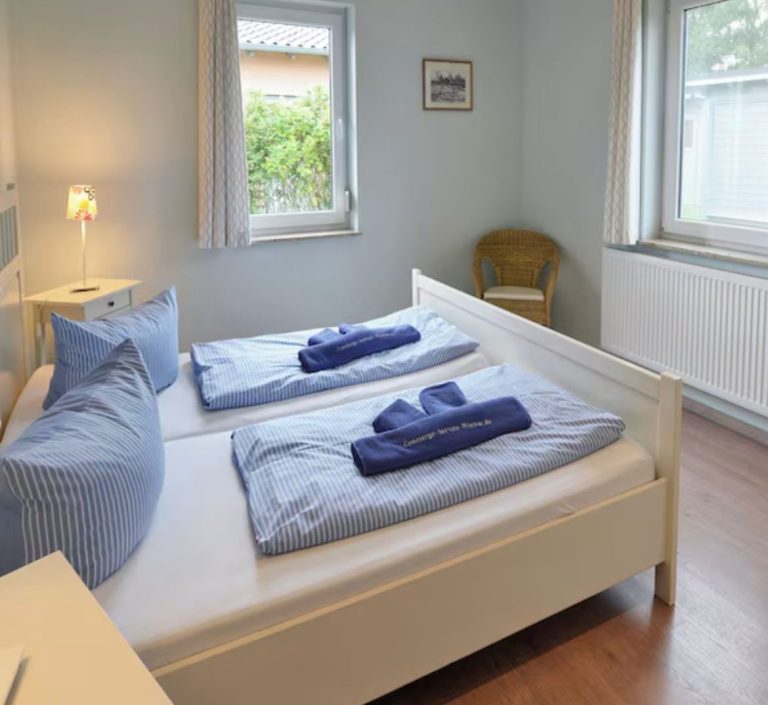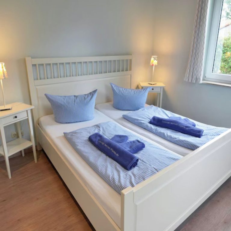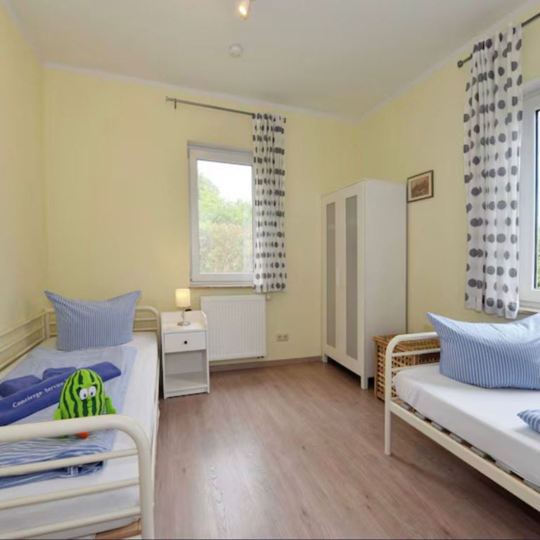 Für erholsame Nächte stehen Ihnen zwei Schlafzimmer zur Verfügung. Diese teilen sich auf in ein Zimmer mit Doppelbett, ein Zimmer mit zwei Einzelbetten sowie auf Anfrage ein Babyreisebett. Für genügend Stauraum sorgen die vorhandenen Kleiderschränke.