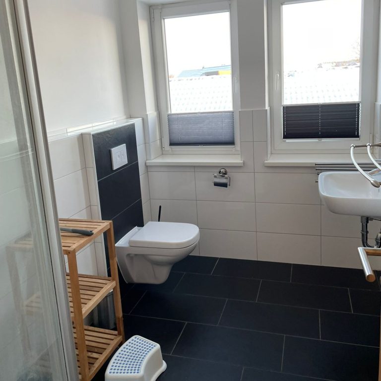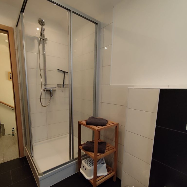 Treten Sie ein in unser helles und freundliches Duschbad. Hier können Sie sich entspannen und erfrischen. Im Erdgeschoss befindet sich ein zusätzliches Gäste-WC.